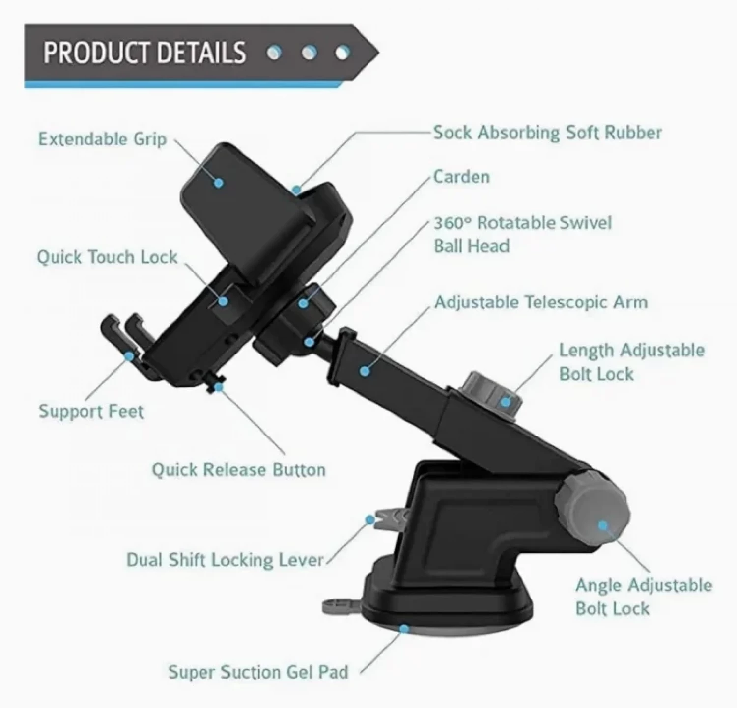 A J-097 egyszerűen rögzíthető a műszerfalra vagy a szélvédőre, erős tapadókorongja stabil és biztonságos tartást biztosít. Kompakt kialakításának köszönhetően a kijelző optimálisan látható, miközben nem akadályozza a sofőr látóterét. A 360°-os forgathatóság lehetővé teszi, hogy a telefont bármilyen szögben elhelyezd az ideális látószög érdekében, minden útviszony mellett.