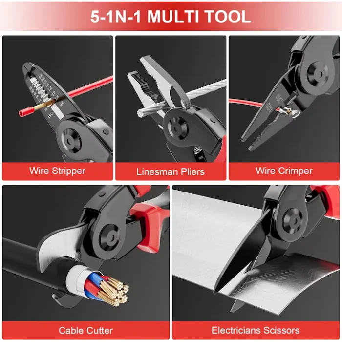 Ez az 5 az 1-ben multifunkciós fogó ideális mindennapi barkácsolási, szerelési és karbantartási feladatokhoz. Prémium acélból készült, tartós és megbízható eszköz, amely több funkciót egyesít: fogó, olló, kábelvágó, krimpelő és csupaszoló. A csúszásgátló fogantyú biztosítja a stabil és biztonságos munkavégzést minden körülmények között.