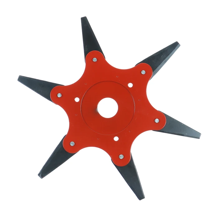 A 6 pengés acél fűkasza tárcsa hatékony megoldást kínál fű, gaz és kisebb bokrok gyors eltávolítására. A többpengés kialakítás egyenletes és precíz vágást biztosít.