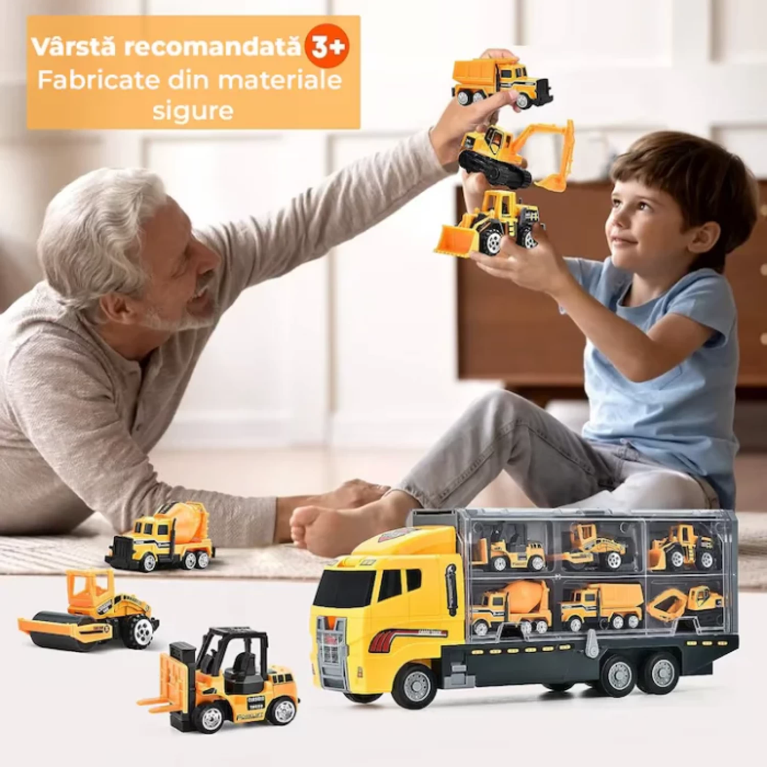Ez a 12 darabos játék teherautó utánfutó tökéletes választás oktató és szórakoztató ajándéknak, amely a mindennapi játékot izgalmas kalanddá változtatja.