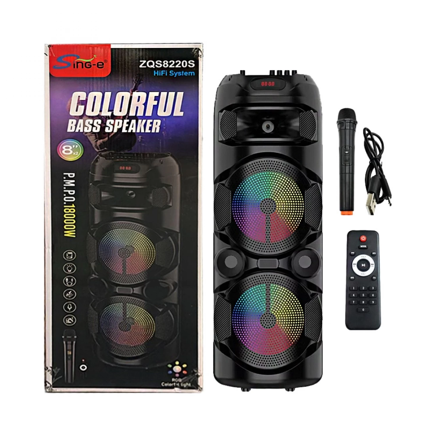 A 40W RMS és 400W PMPO teljesítménnyel a ZQS8220 hangszóró tiszta és kiváló minőségű hangzást biztosít, amely tökéletes közepes méretű bulikhoz, családi összejövetelekhez vagy karaoke szekciókhoz. A 8 colos hangszóró kiváló minőségű, jól kiegyensúlyozott hangot ad, jól definiált mély- és magas frekvenciákkal.
