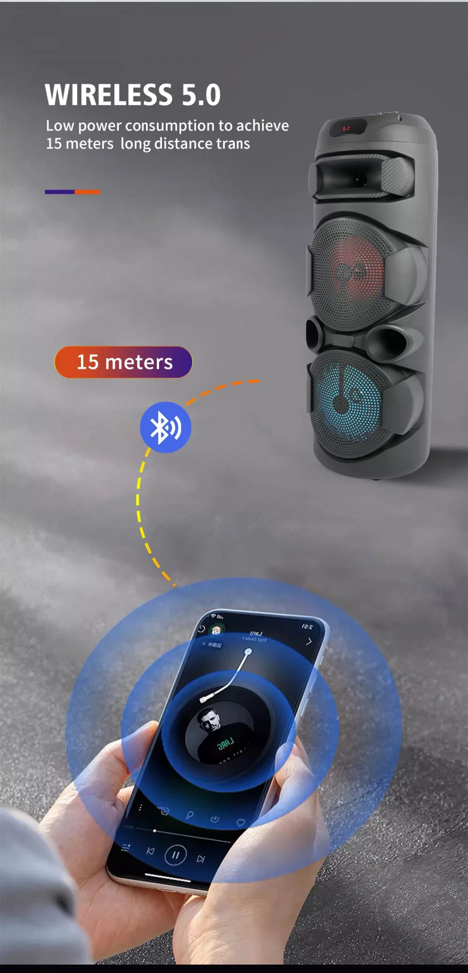 Méretei: 305 x 305 x 800 mm. A hangszóró könnyen szállítható kompakt kialakításának és tartós műanyag anyagának köszönhetően. Tökéletes szabadtéri bulikhoz, családi eseményekhez, karaoke partikhoz vagy akár vakációkhoz is.