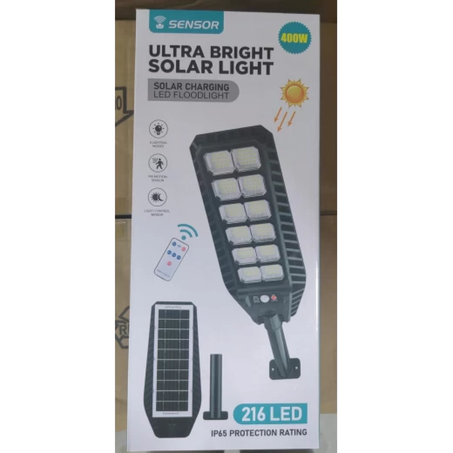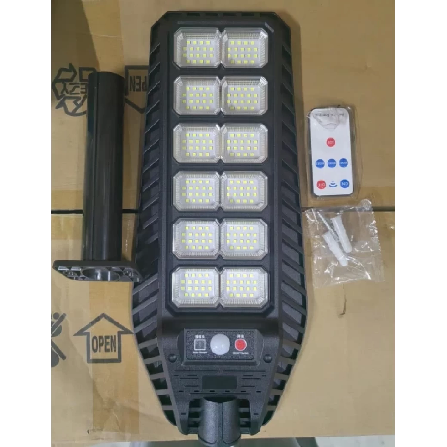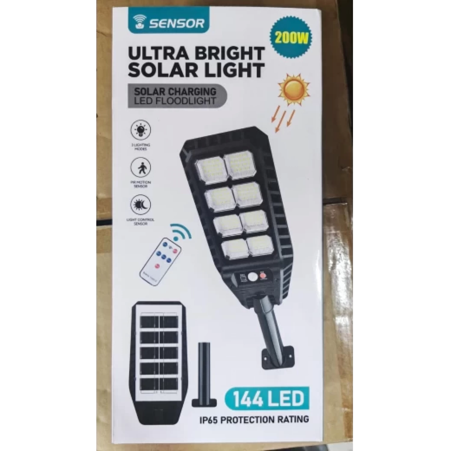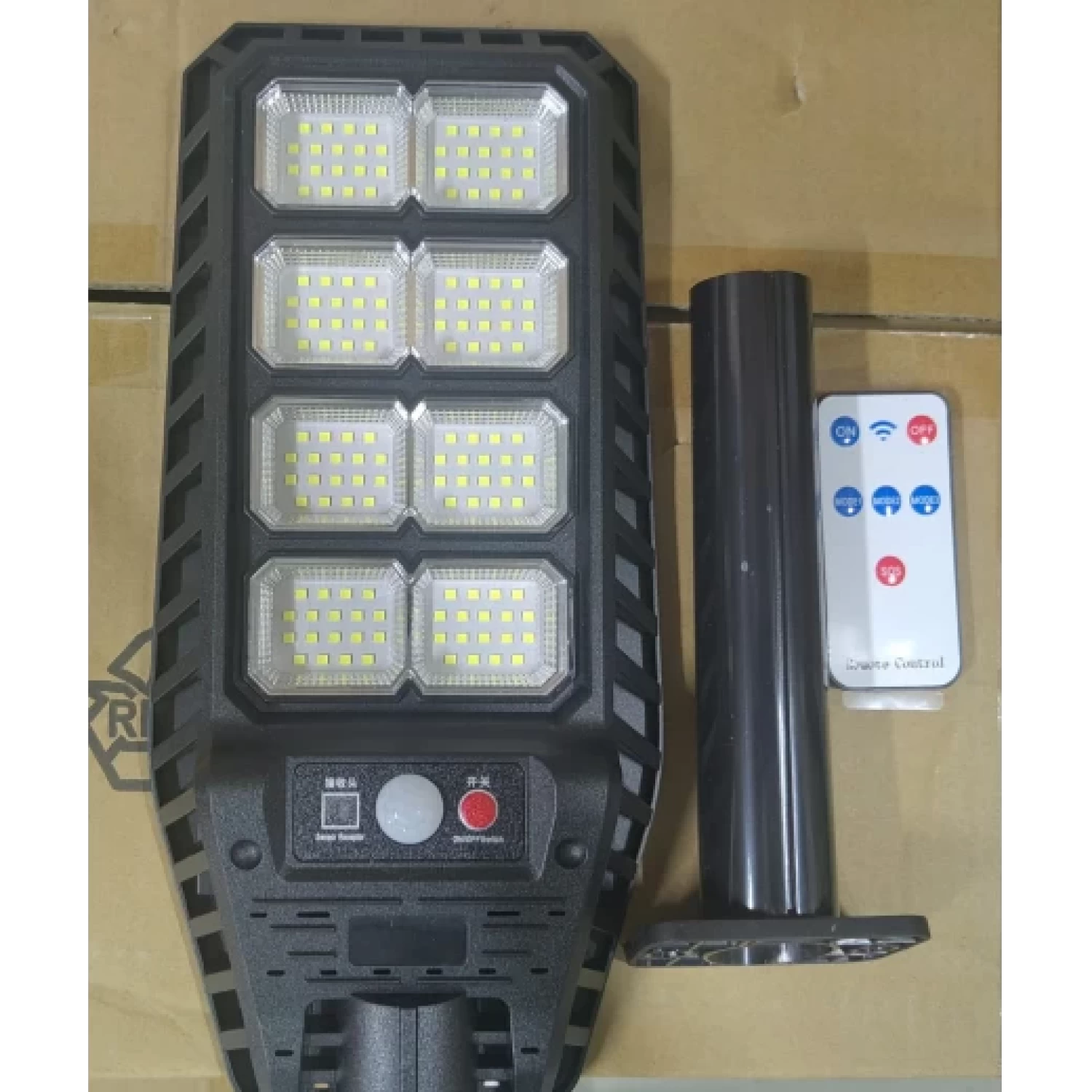 Utcai Napelemes Lámpa, IP67, 6500K, Mozgásérzékelővel, 3 Világítási Móddal, Távirányítóval, Alumínium + Műanyag, Víz- és Porálló