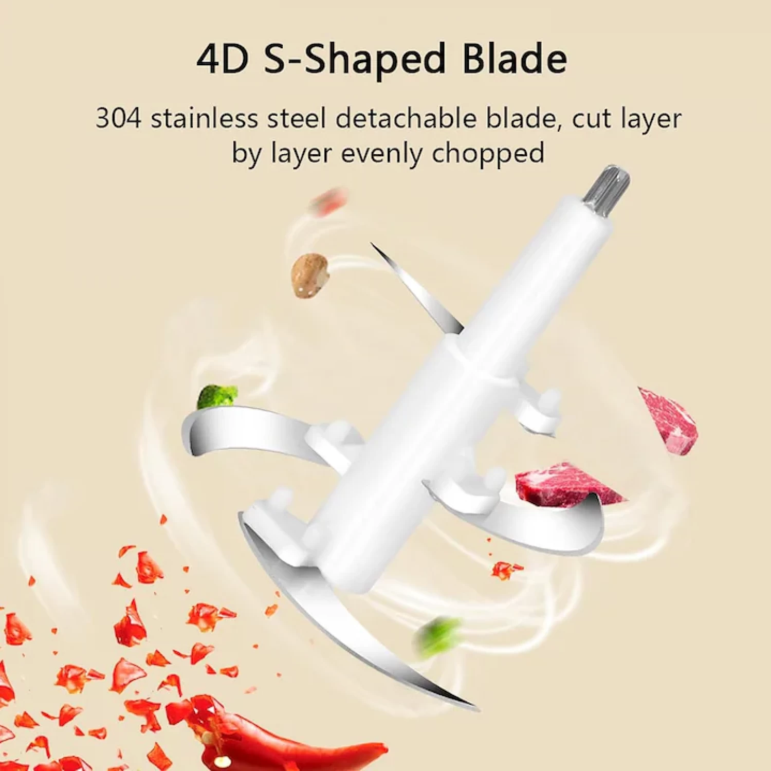 4 Rozsdamentes Acél Kés: Ellenáll a kopásnak és a korróziónak, biztosítva a hús, zöldség, gyümölcs és egyéb alapanyagok egyenletes, hatékony aprítását.