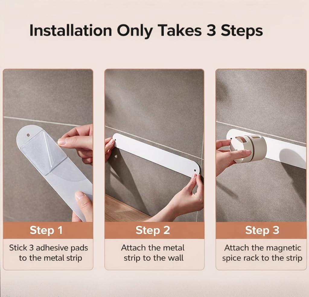 A 6 részes falra szerelhető fűszertartó szett praktikus és helytakarékos megoldást kínál a konyhai rendszerezéshez. A mágneses rögzítés stabil tartást biztosít, miközben megkönnyíti a tartók levételét és visszahelyezését.