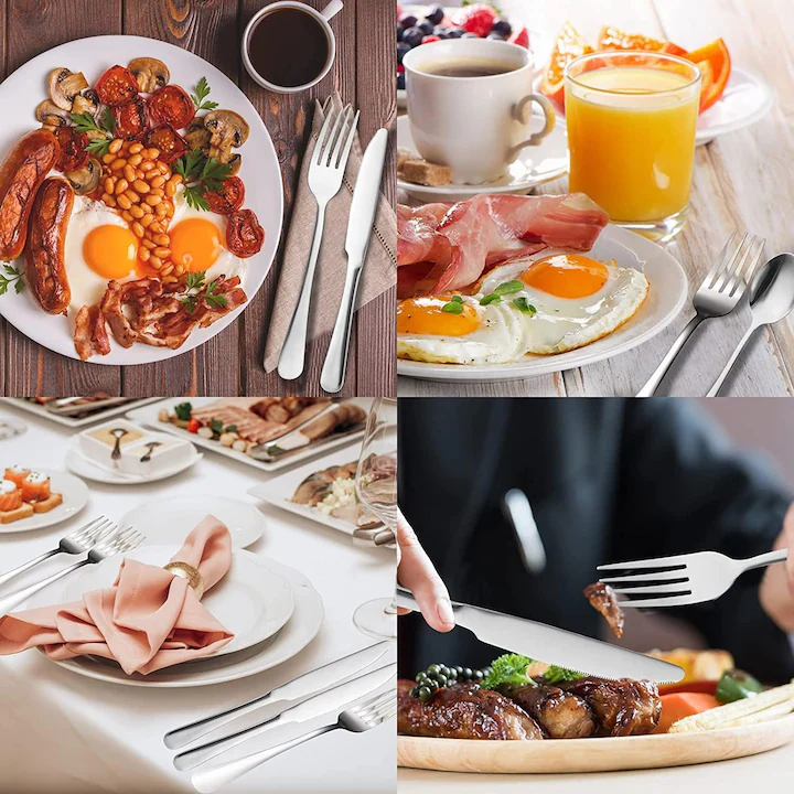 A 24 részes rozsdamentes acél evőeszköz készlet ideális választás mindennapi étkezésekhez és ünnepi alkalmakhoz egyaránt. Az elegáns, fényes felület kifinomult megjelenést kölcsönöz az asztalterítésnek.