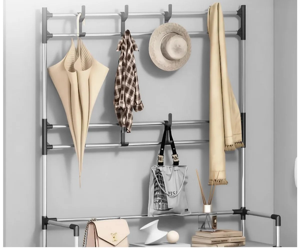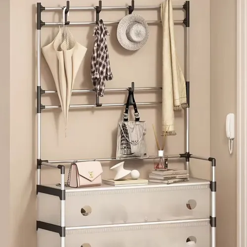 A multifunkciós előszobai fogas a funkcionalitást és a modern megjelenést ötvözi, segítve a rendezett és hatékony tárolást.