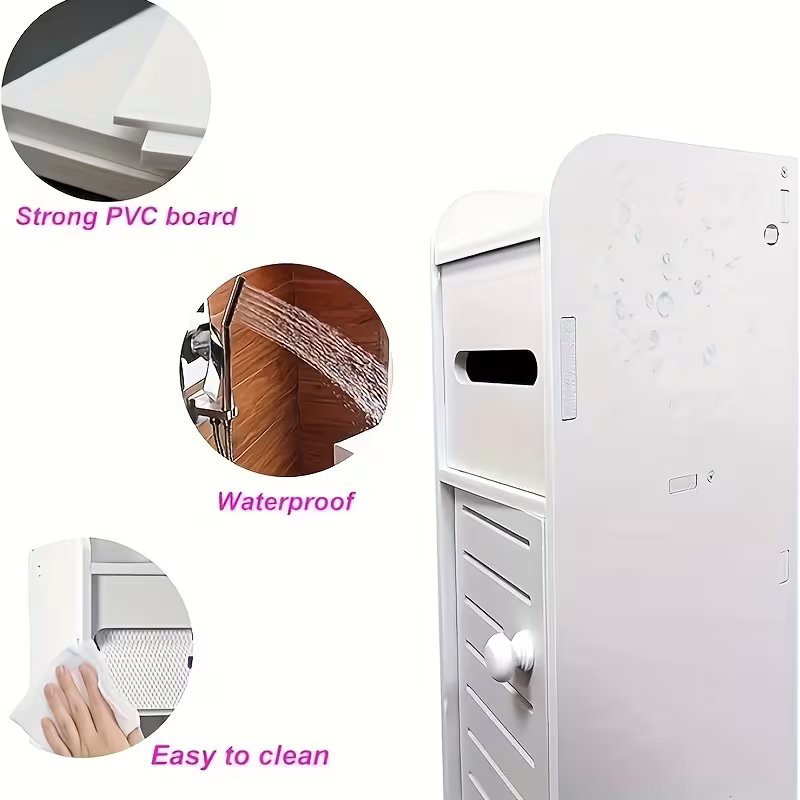 A 4 szintes slim fürdőszobai szekrény a funkcionalitást és a kompakt kialakítást ötvözi, segítve a rendezett és jól szervezett tér kialakítását.