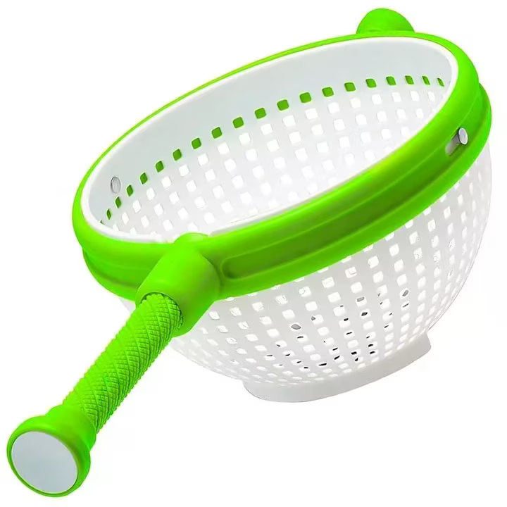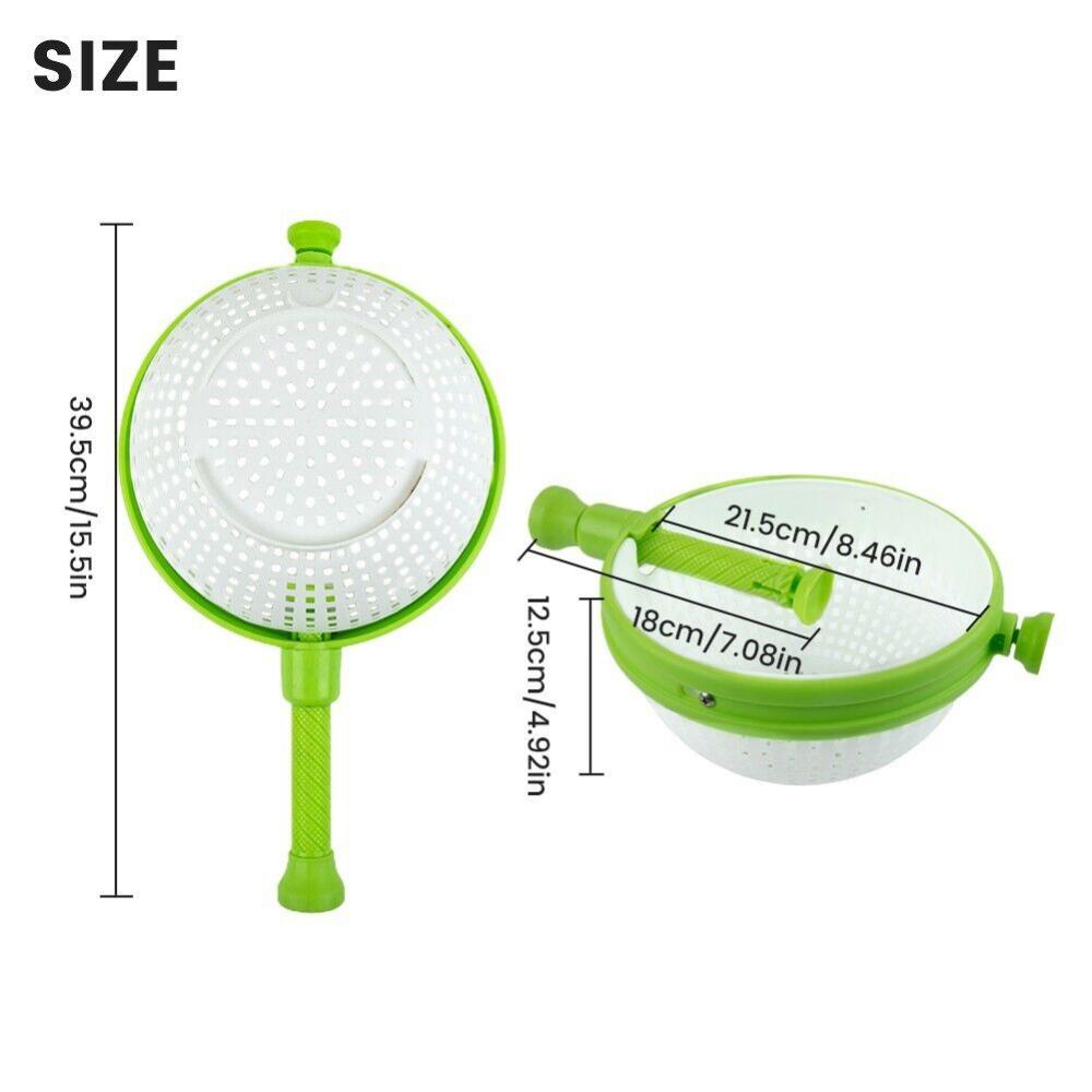 Multifunkciós salátacentrifuga szűrő, forgó rendszer kihúzható karral, tartós műanyag, zöldségmosáshoz és szárításhoz, fehér/zöld