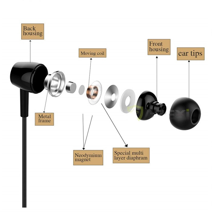 Vezetékes fülhallgató 3.5 mm jack csatlakozóval, sztereó basszus hangzás, beépített mikrofon és vezérlő, vízálló kialakítás, tartós ABS anyag